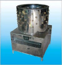 Feathers are quickly stripped by rubber fingers on the spinning base in addition to static rubber fingers on the walls